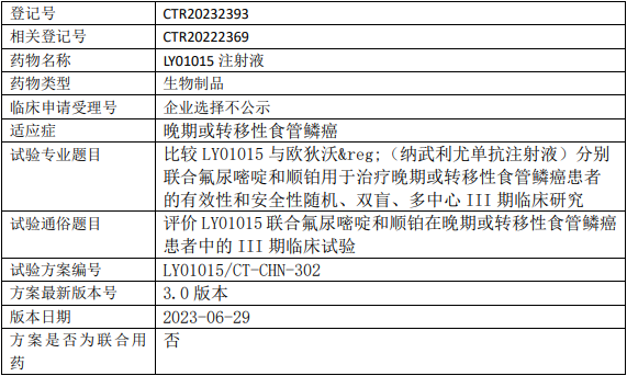 比较LY01015与欧狄沃®分别联合氟尿嘧啶和顺铂治疗晚期或转移性食管鳞癌患者的客观缓解率(16周ORR)。...