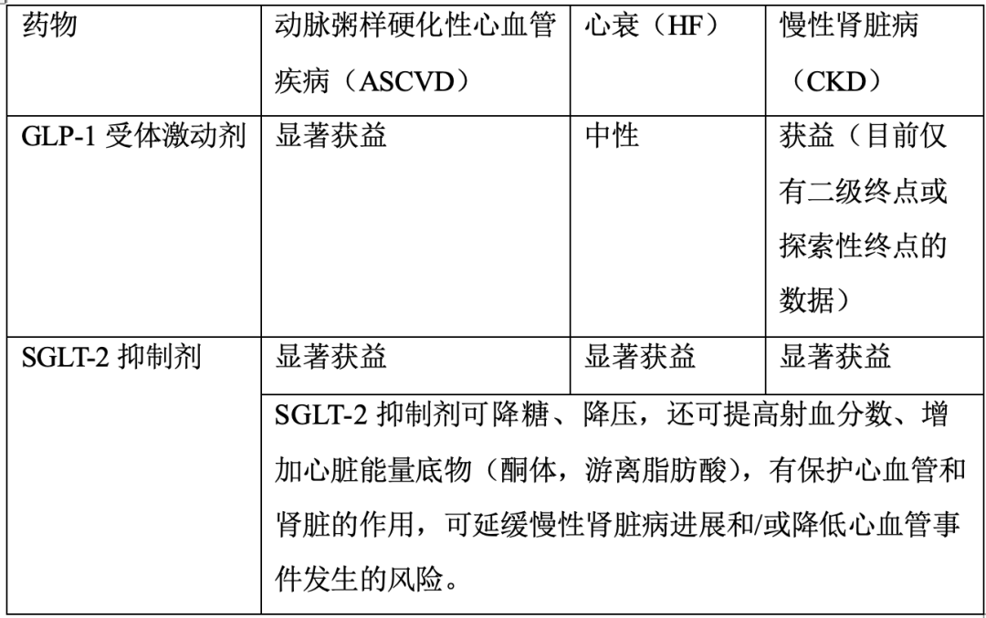 降糖药物主要有胰岛素、二甲双胍、磺脲类药物、格列奈类药物、α-糖苷酶抑制剂、噻唑烷二酮类药物(TZDs)、钠-葡萄糖协同转运蛋白2(SGLT-2)抑制剂、二肽基肽酶IV(DPP-4)抑制剂、胰高糖素样肽1(GLP-1)受体激动剂等。合并缺血性心脏病者,可酌情选用新型降糖药物,如SGLT-2抑制剂。